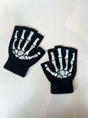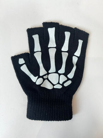 GOTHIC & PUNK KNITTED FINGER LESS SKELETON HAND GLOVES
