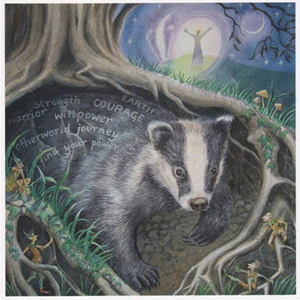 PAGAN WICCAN GREETING CARD Calling in Badger WENDY ANDREW Birthday CELTIC GODDESS