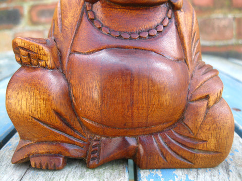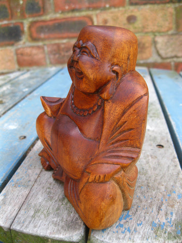 Laughing, Smiling Wooden Buddha Statue
