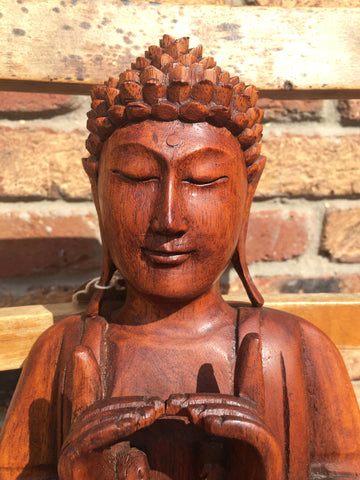 This beautiful Thai Wooden Buddha statue has been personally hand made under strict Fair Trade Guidelines. The detail is breath-taking and achieved using traditional methods with no power tools or machinery.
