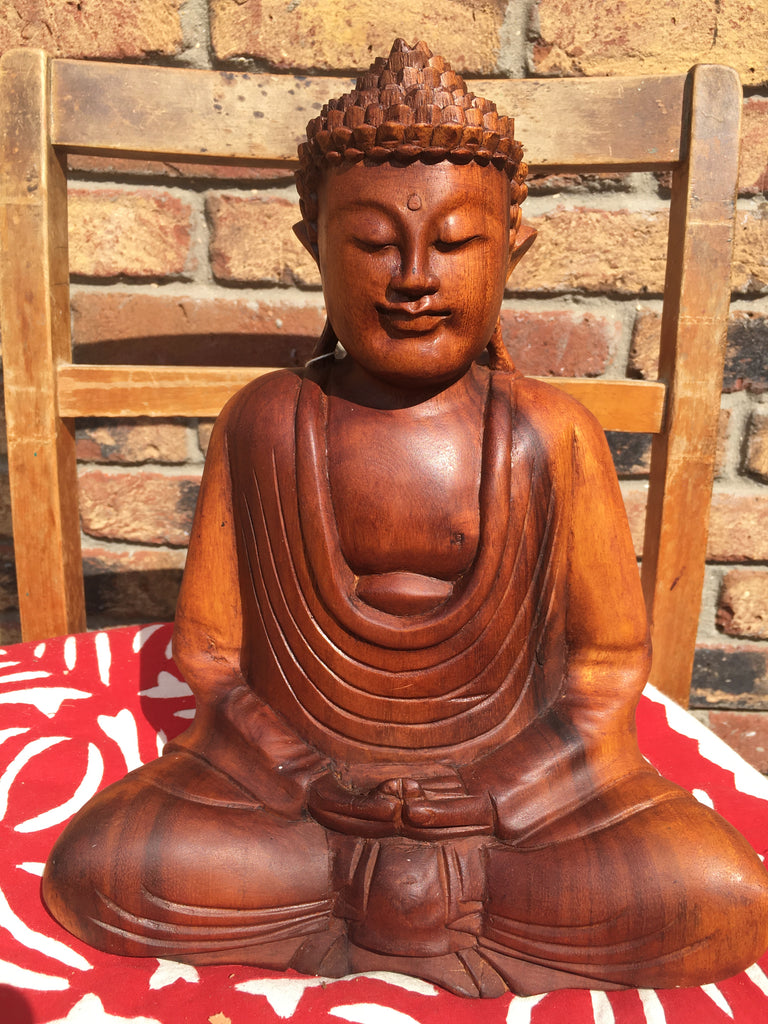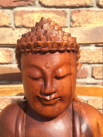This beautiful Thai Wooden Buddha statue has been personally hand made under strict Fair Trade Guidelines. The detail is breath-taking and achieved using traditional methods with no power tools or machinery.