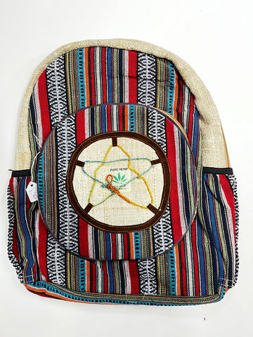 A fantastic, exquisitely handcrafted, rucksack from Nepal! This Rucksack, made from pure hemp, has a large outer compartment, 2 side pockets, handle and adjustable shoulder straps. Completely Fairtrade, this rucksack will look great on you in town, at school, college or university, on the beach or at a festival!!