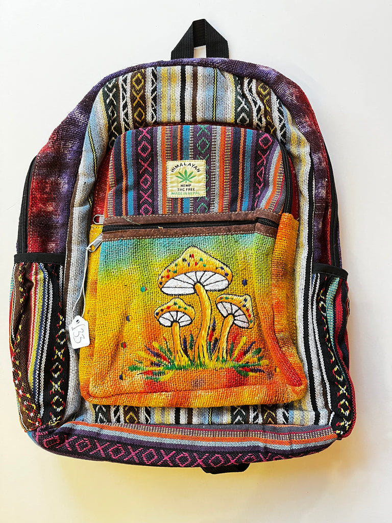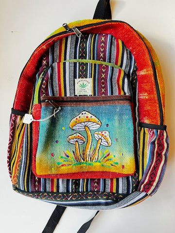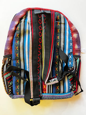 A fantastic, exquisitely handcrafted, rucksack from Nepal! A riot of colour this Rucksack, made from pure hemp, has a large outer compartment, 2 side pockets, handle and adjustable shoulder straps. Completely Fairtrade, this rucksack will look great on you in town, at school, college or university, on the beach or at a festival!!
