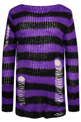 This GOTHIC PUNK GRUNGE STRIPED JUMPER is a distressed, oversized piece, perfect for the 90s & Y2K fashion era. The striped design features a boat neck and pullover closure, and is available in a variety of colours, making it a casual and comfortable option for any season.
