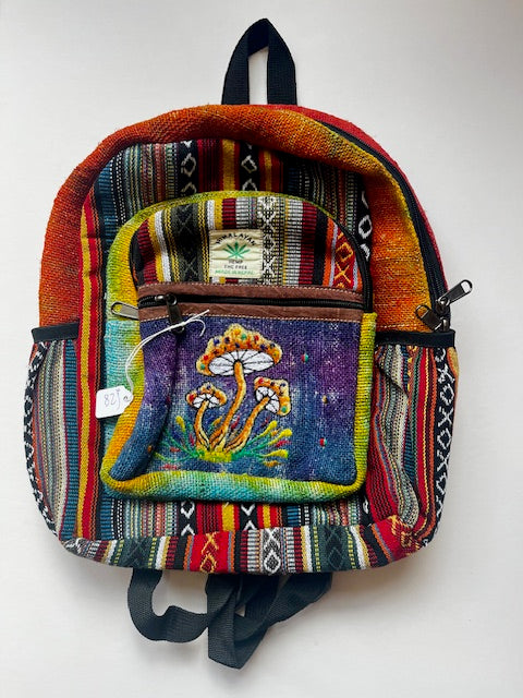 A fantastic, exquisitely handcrafted, rucksack from Nepal! A riot of colour this Rucksack, made from pure hemp, has a large outer compartment, 2 side pockets, handle and adjustable shoulder straps. Completely Fairtrade, this rucksack will look great on you in town, at school, college or university, on the beach or at a festival!!