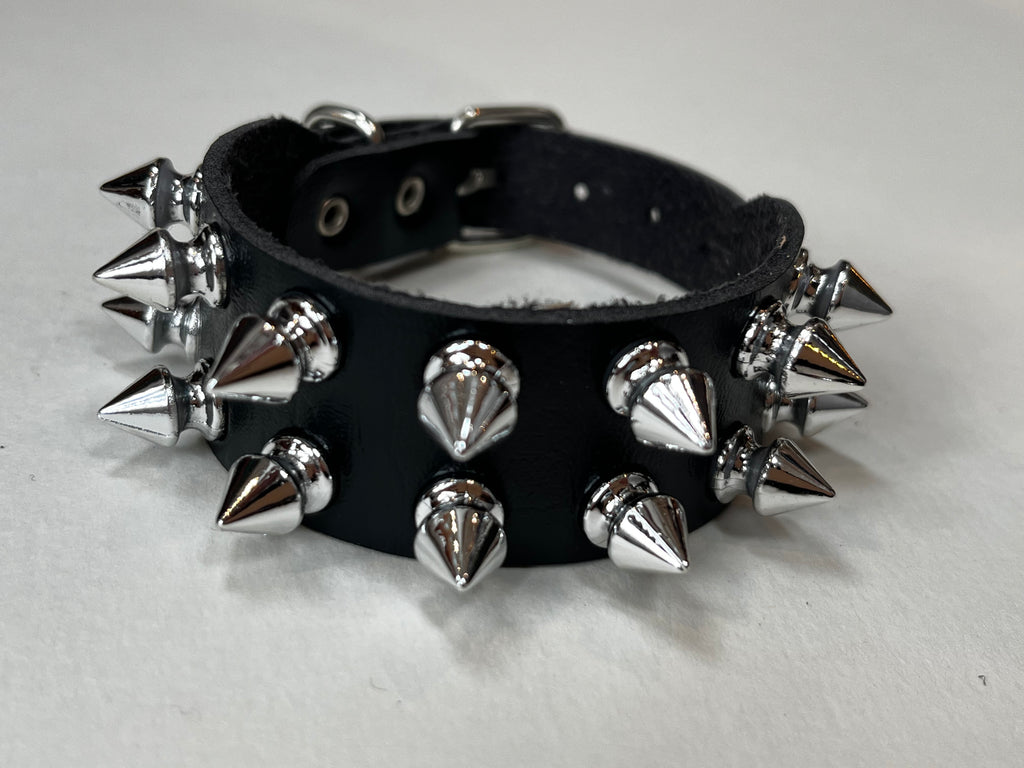 Fantastic studded bracelets made from faux, vegan friendly leather! Each one has an adjustable clasp so should fit most wrists!