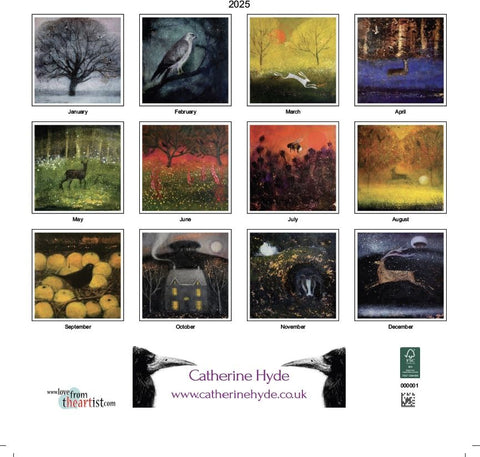 A stunning 2025 Wall Calendar by acclaimed artist Catherine Hyde! Each month has a beautiful painting by Catherine Hyde with the days of the month & the phases of the moon all marked on so you'll never miss anything!