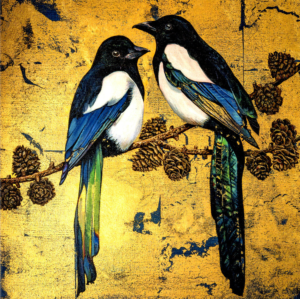 FINE ART GREETING CARD Magpies GEORGIA COX