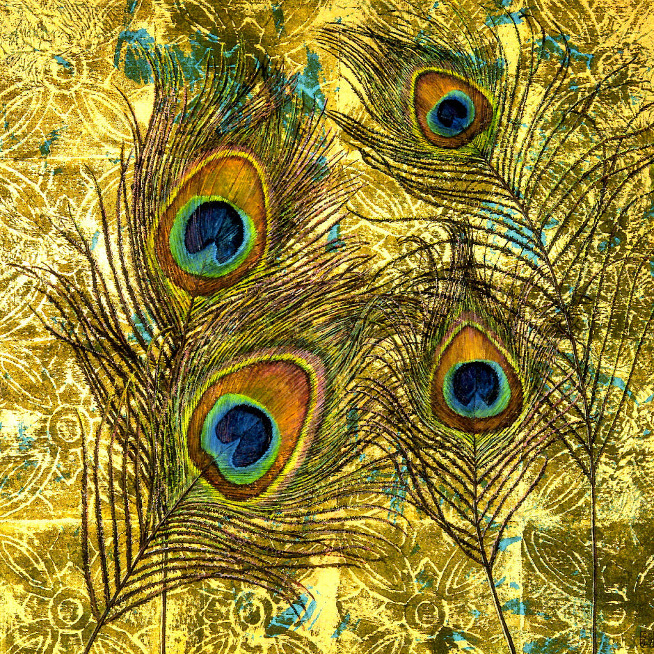 FINE ART GREETING CARD Peacock Feathers on Gold GEORGIA COX