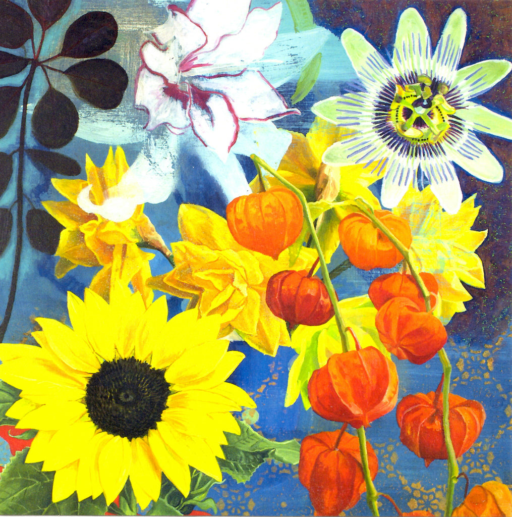 FINE ART GREETING CARD Sunflowers & Physalis GEORGIA COX