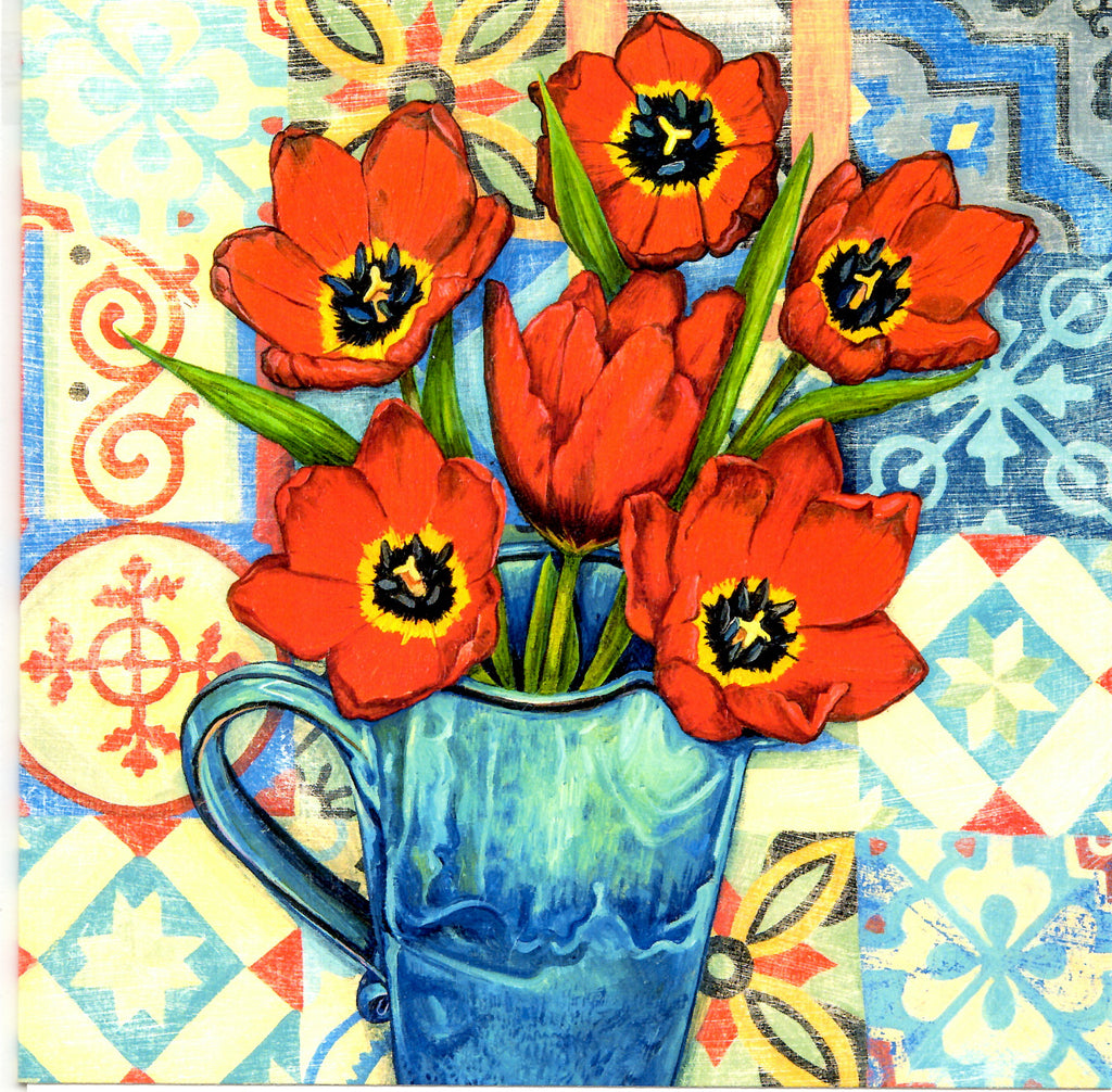 FINE ART GREETING CARD Tulips & Tiles GEORGIA COX