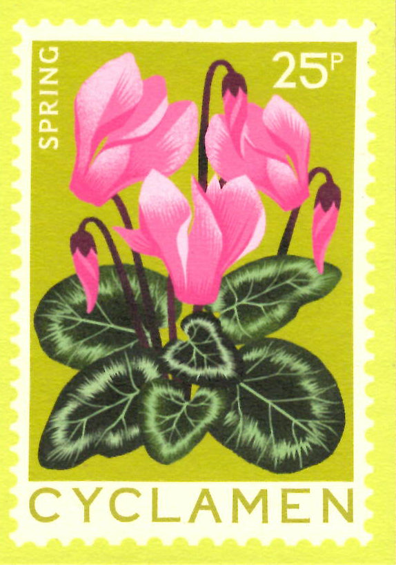 MINI GREETING CARD Cyclamen Flower PRINTER JOHNSON