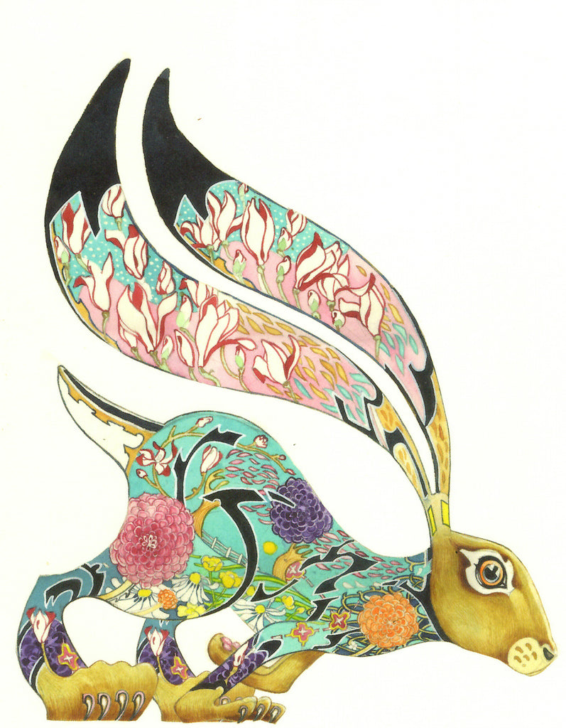 PAGAN WICCAN FINE ART GREETING CARDS Turquoise Hare BIRTHDAY Animal BLANK DM COLLECTION