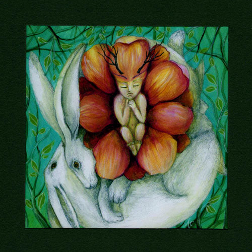 PAGAN WICCAN GREETING CARD Born HARE GODDESS New Born AMANDA CLARK