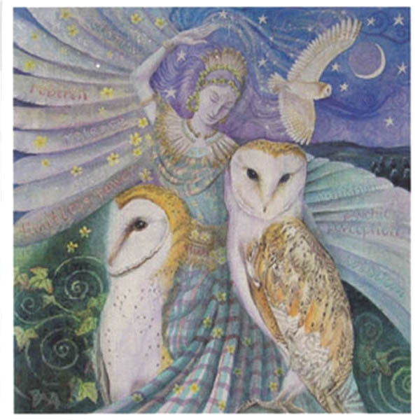 PAGAN WICCAN GREETING CARD Owl Dancing WENDY ANDREW CELTIC GODDESS