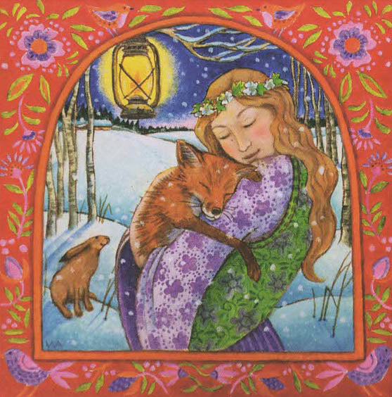 YULE XMAS GREETING CARD Folksy Fox Love PAGAN SOLSTICE WENDY ANDREW