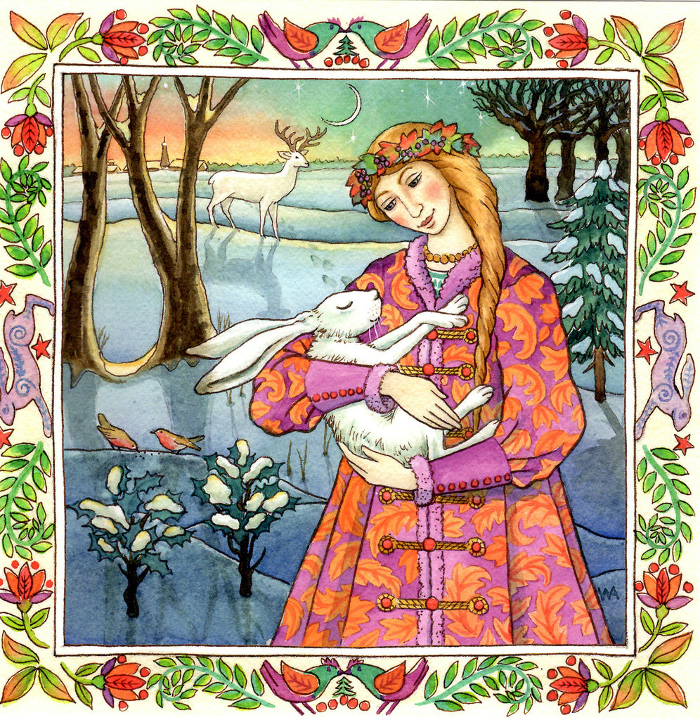 YULE XMAS GREETING CARD Sacred Dawn Stillness PAGAN SOLSTICE Hare WENDY ANDREW