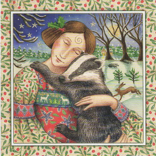 YULE XMAS GREETING CARD Starry Badger Hug PAGAN SOLSTICE WENDY ANDREW