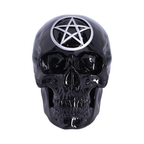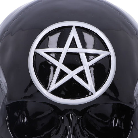 A stunning and macabre Black Magic Pentagram Spirits Skull Head Figure! Made from cold cast resin this shiny Black Magic Pentagram Skull Head will look amazing in your homes and take pride of place on your shelves and mantelpieces!