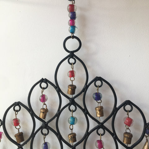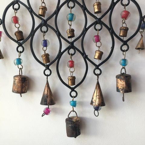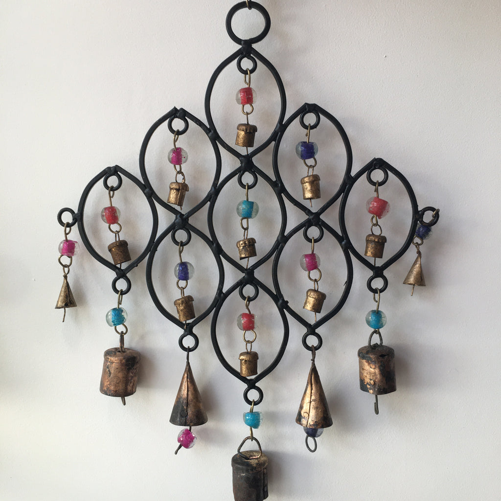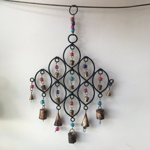A wonderful hanging Wind Chime! Made in Metal with wooden beads and mini bells, giving the wind chime a charming rustic look!