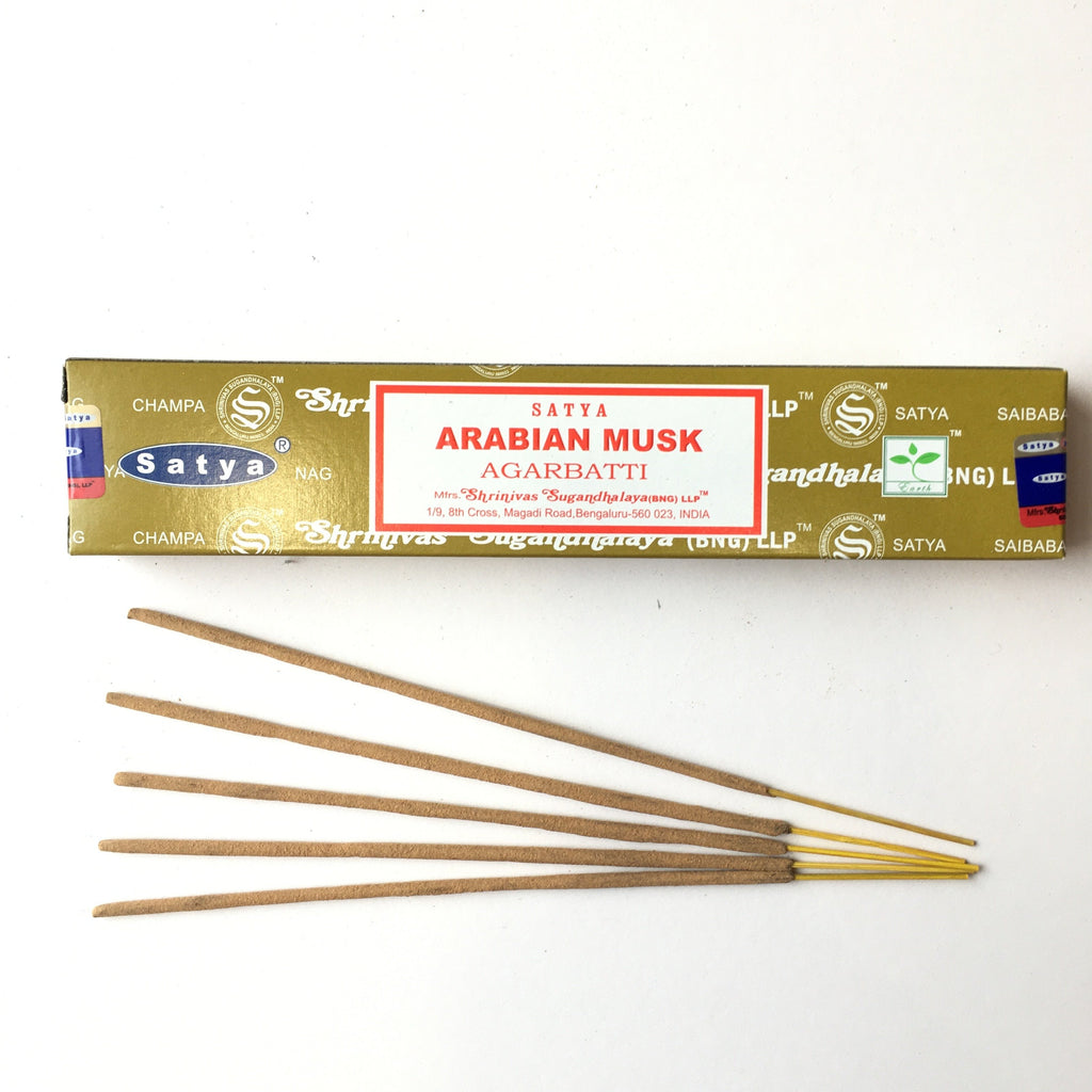 Satya Nag Champa Arabian Musk Incense sticks will instantly conjour up the sights and smells of a Moroccan Bazaar! As the scent from the Satya Nag Champa Arabian Musk Incense gently wafts around your home you'll become calmer and more relaxed making it an ideal incense for Prayer, Healing and Meditation.