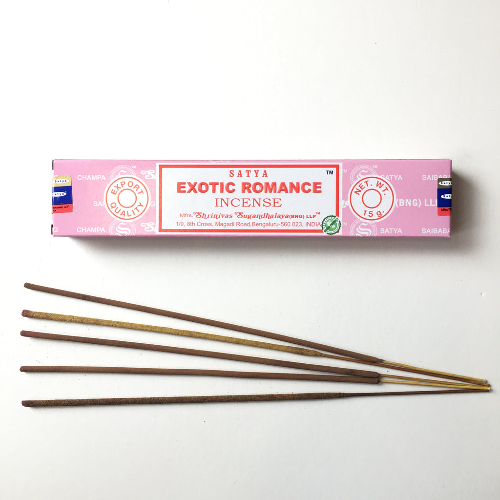 Satya Exotic Romance Incense combines the classic Nag Champa aroma with added subtle floral notes to create a long-lasting indulgent and sensual fragrance!