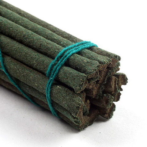 This marvellous Green Tara incense has a deep, earthy aroma and a rich green colouring. Each stick is hand prepared in the traditional way by making long lengths and then cutting to the required size. The incense does not have a wood or bamboo stick inside it and therefore produces a fuller, undiluted aroma. Green Tara is one of the most popular goddesses in the Buddhist pantheon and is regarded as representative of enlightened activity. This incense is primarily used as an offering in puja, which is a special kind of daily worship and an expression of devotional attention. From the Box: "Green Tara traditional Tibetan incense is purely hand prepared from highly flavoured medicinal herbs and other precious substances. The combination of genuine scented substances makes the green Tara incense richer and superior quality than other incenses. Our incense is totally absent of chocking and camphor smell and is also non-toxic and non-habit forming. Generally the Tibetan incense is used for Puja offering and purification, but is also used as air freshener which keeps one's surroundings with a good scent.