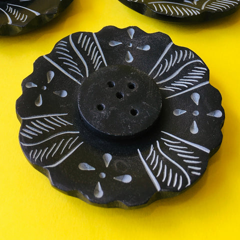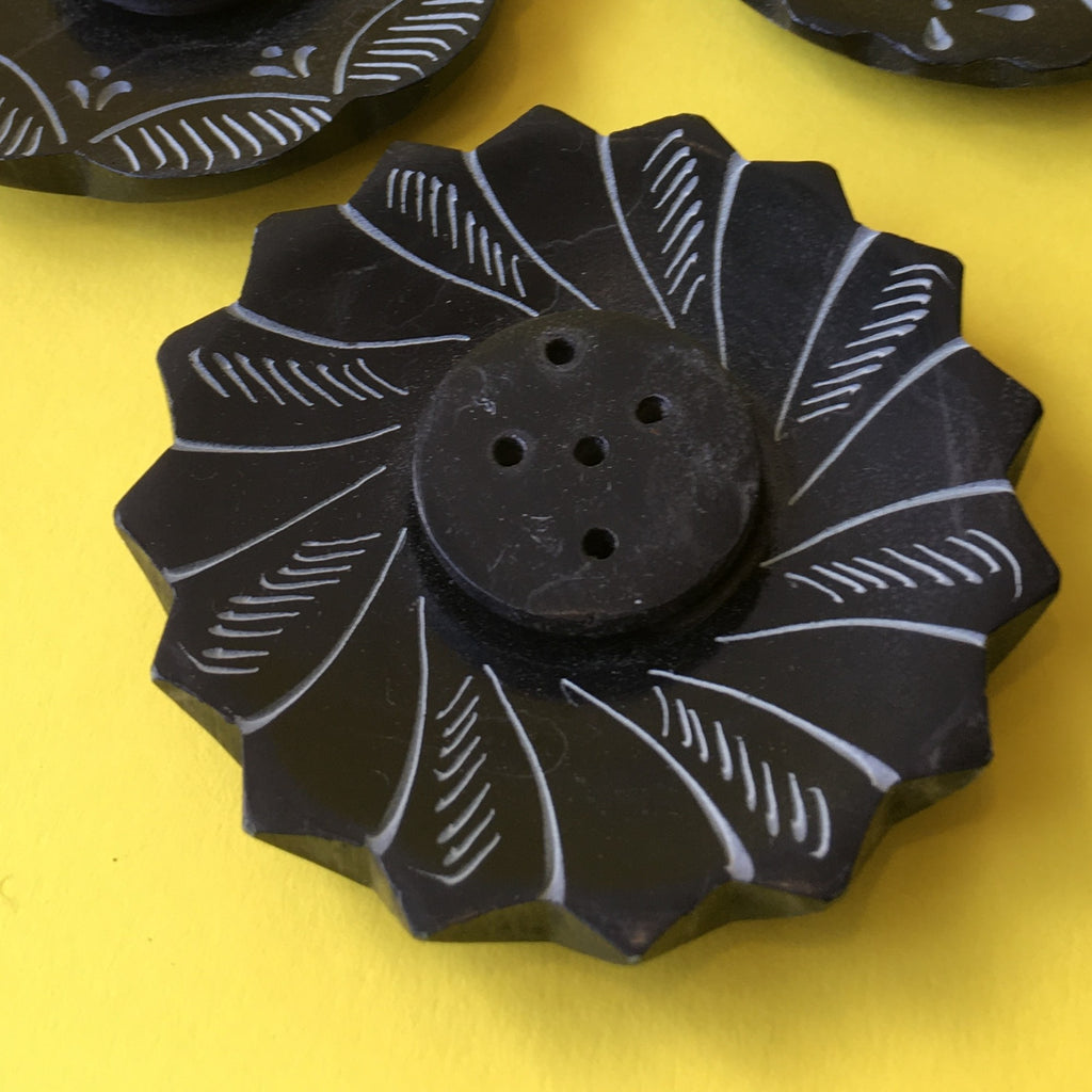 A wonderful Incense holder made from polished black soapstone in 3 different hand carved designs! Each Incense holder has 5 holes to place your incense sticks in
