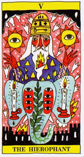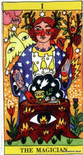 The TAROT DEL FUEGO is a dynamic, individualistic tarot roughly based on the Marseilles pattern from Spanish artist, Ricardo Cavolo. His art on the 78 cards is a mixture of naive, pop-art and tattoo artist!