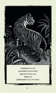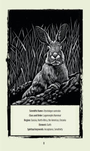 This dynamic package includes a 112-page book that describes the origin of each animal's sacred nature along with a chart that lists its element, where it lives, zoological information, symbols associated with it, and a brief charm to ask the animal for advice or guidance. Each of the 50 cards features a message specific to the animal represented. The illustrations are created with the scratchboard technique; using a black board, the artist scratches the surface to create a relief effect, which brings each creature to life.